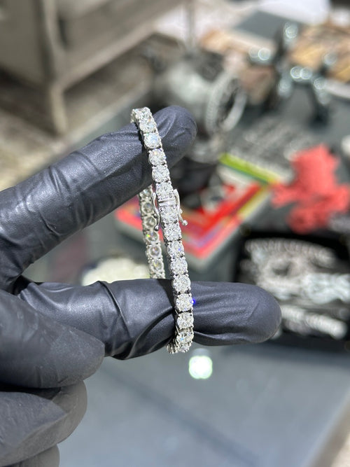 Silver 925 Rhodium Plated Blue CZ Hanging Strand Pendant Necklace - STP00465BL -
